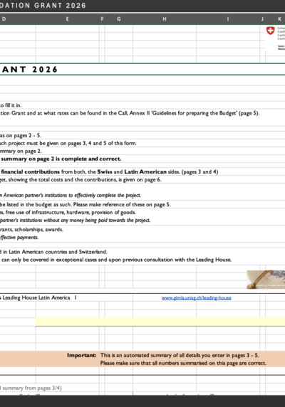 Each proposal must include one principal investigator based in Switzerland, affiliated with an eligible Swiss institution, and one principal investigator in Latin America. Multilateral partnerships with additional Latin American countries are welcome.