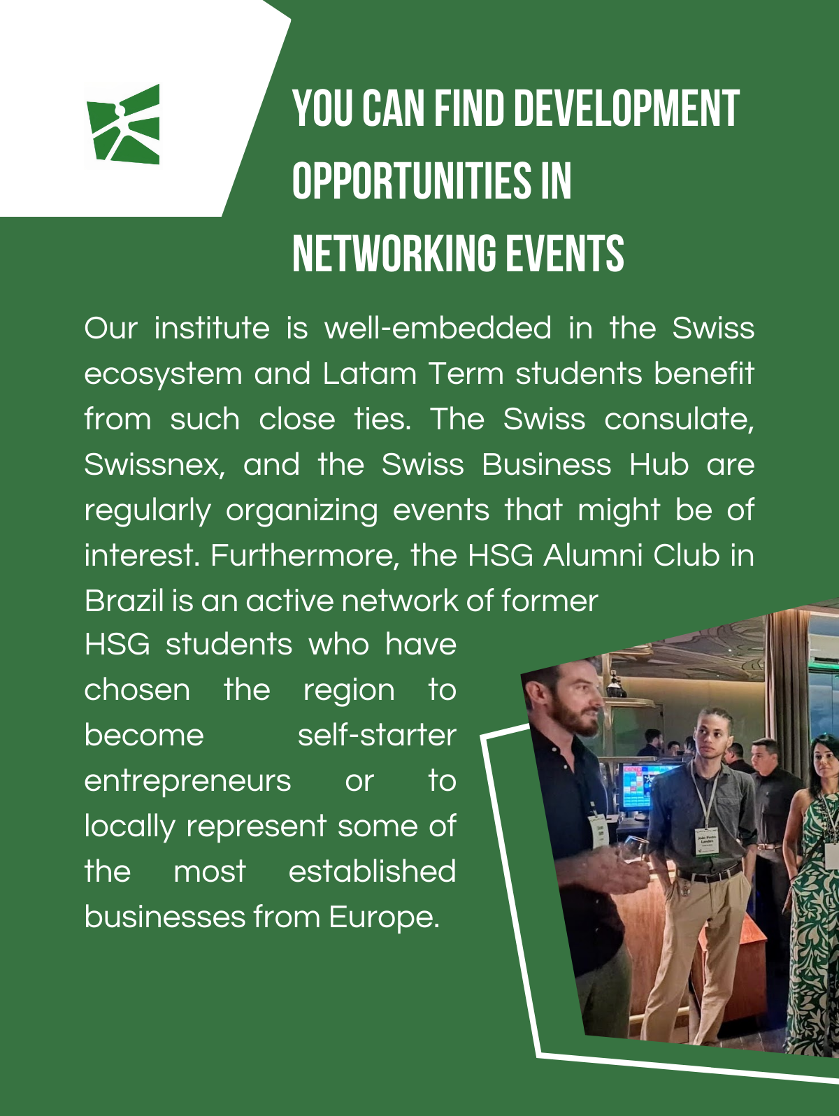 The HSG Latam Term is a semester of exchange in Brazil. It presents an unparalleled international opportunity for Bachelor’s students seeking to immerse themselves in Latin American culture and deepen their understanding of its economic and political landscapes. Held during the spring semester, this program welcomes undergraduates keen on exploring the rich tapestry of Latin America's cultures while delving into the intricacies of emerging markets.